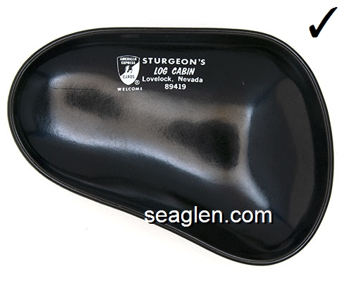 Sturgeon's, Log Cabin Motel & Rest., Lovelock, Nevada 89419, (American Express logo) - White imprint Plastic Ashtray