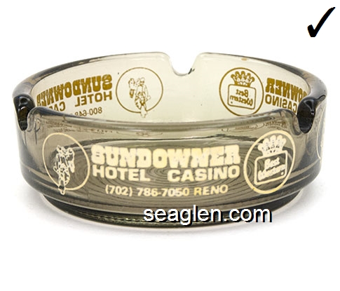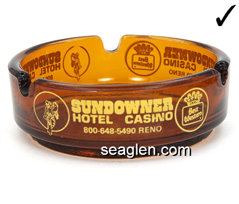 Sundowner Hotel Casino Reno,800-648-5490, 702-786-7050 - Molded imprint Glass Ashtray