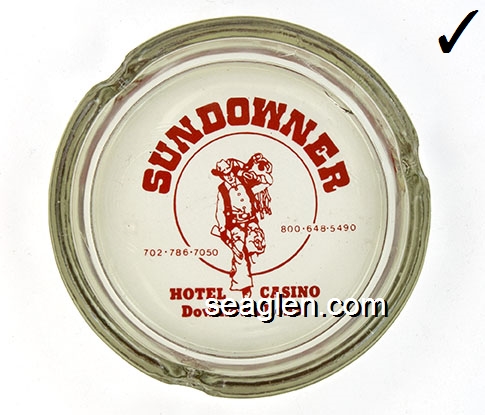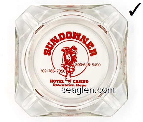 Sundowner, 800-648-5490, 702-786-7050, Hotel Casino, Downtown Reno - Red imprint Glass Ashtray