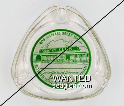 Bob and Pearl Greet You ..., Swanky Club, Smorgasbord Dinners, Bar and Casino, Between Boulder City and Pittman - Green on white imprint Glass Ashtray