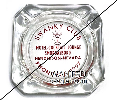 Swanky Club, Motel - Cocktail Lounge, Smorgasbord, Henderson - Nevada, Phone 565-9997 - Red imprint Glass Ashtray