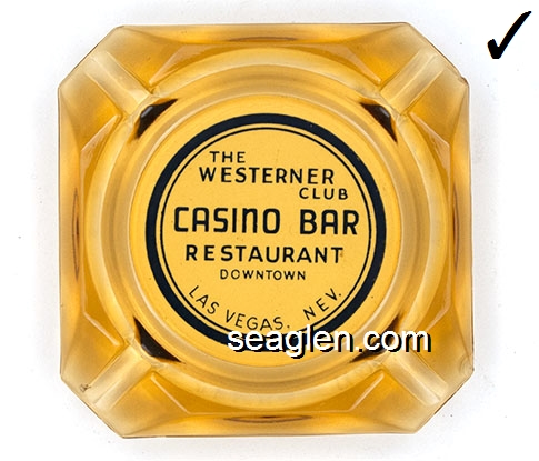 WES-C1 Westerner Club Las Vegas, NV 3 1/2" Amber Glass Ashtray Brown and yellow imprint: The Westerner Club Casino Bar, Restaurant Downtown Las Vegas, Nevada (Like WES-06, except amber glass) |