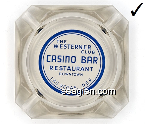 WES-A2 Westerner Club Las Vegas, NV 3 1/2" Clear Glass Ashtray Blue imprint: The Westerner Club Casino Bar Restaurant, Downtown Las Vegas, Nev. |