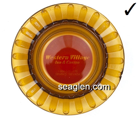 ![I-80 At McCarran [Exit 19], Western Village Inn & Casino, 1-800-648-1170, Sparks, Nevada - Orange on brown imprint Glass Ashtray](../at_pix/wev_02.jpg) WEV-02 Western Village Inn & Casino Sparks, NV 4 1/2" Amber Glass Ashtray Orange on brown imprint: I-80 At McCarran [Exit 19], Western Village Inn & Casino, 1-800-648-1170, Sparks, Nevada |