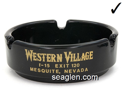 WEV-20 Western Village (Mesquite) Mesquite, NV 3 1/2" Amethyst Glass Ashtray Yellow imprint: Western Village, I-15, Exit 120, Mesquite, Nevada |