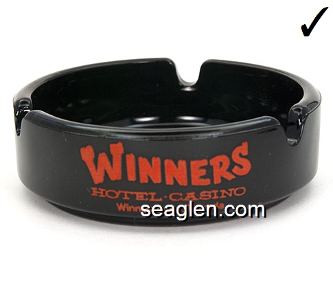 WIN-A2 Winners Inn/ Winners Hotel-Casino Winnemucca, NV 3 9/16" Smoke Glass Ashtray White imprint: Winners Hotel - Casino, Winnemucca, Nevada (702) 623-2511 |