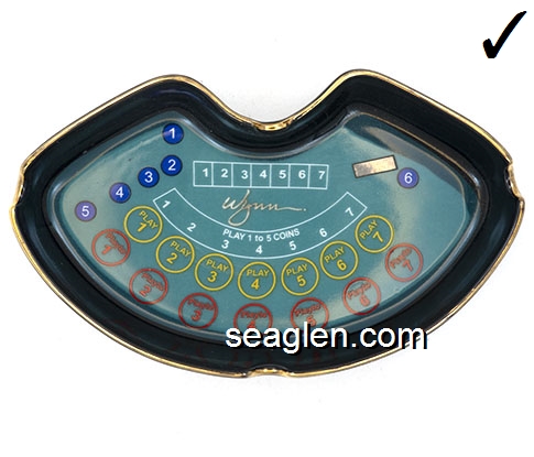 WYN-A1 Wynn Las Vegas Las Vegas, NV 6 1/4 x 3 3/4" Black Porcelain Ashtray White on green imprint: Wynn |
